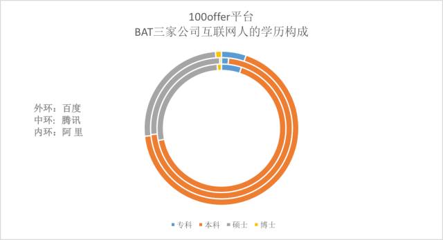 那么,BAT 三家公司中,哪家更重视高学历?哪家又对专科生的接受度更高呢?