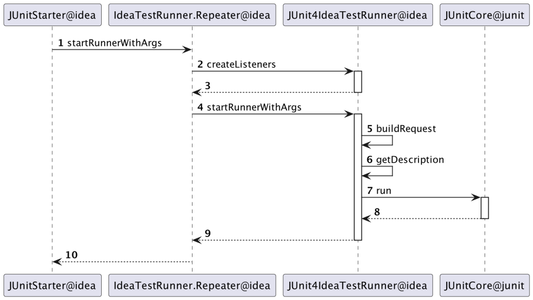 通过IDEA直接运行单测时,会通过JUnitStarter的main方法作为入口,最终调用Junit运行单元测试。