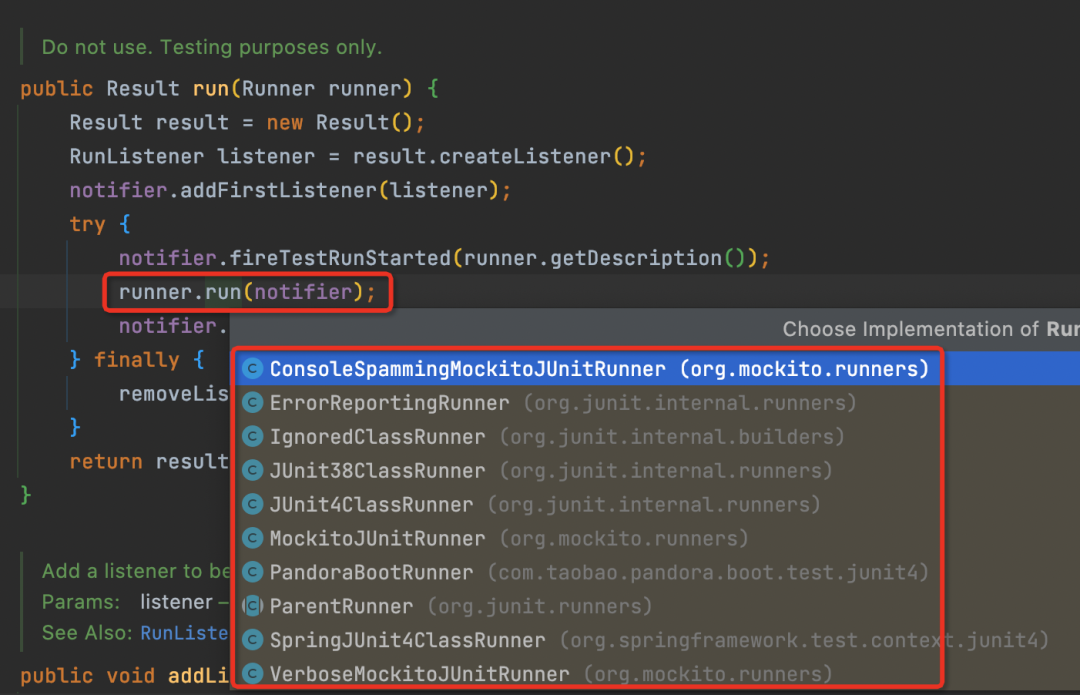 如果上面都不满足,则返回BlockJUnit4ClassRunner,其表示的是一个标准的JUnit4测试模型