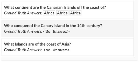 2018年斯坦福在1.0版本数据集的基础上发布了新的SQuAD 2.0。新版数据集不仅包含了原来的所有10万条问题,还人工撰写了五万句根据文章无法回答的问题,而且这些问题都是精心设计,让它们看起来和可回答的问题非常相似。