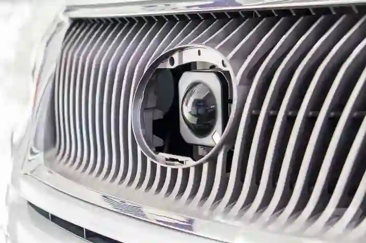 一台摄像机透过谷歌自动驾驶汽车的格栅窥视。Photo by Sean O’Kane / The Verge