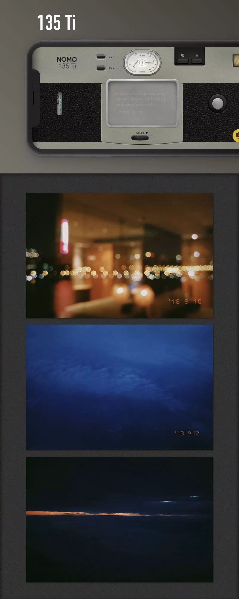 但 NOMO 可以说是众多胶片风格摄影应用中「最特殊的一个」,它不是一款简单的「滤镜应用」,而是把多款经典的胶片相机都「搬」到了手机上,无论是 UI 设计,还是震动反馈和声效,NOMO 都极力还原传统相机的细节,同时在照片风格上也做了大量地尝试和调整,尽管到目前为止 App 内只有 14 款「相机」(需要付费成为 PRO 会员),但 NOMO 仍然收到了大量用户的欢迎,不少明星在社交媒体上分享的照片也时常能看到 NOMO 的身影。