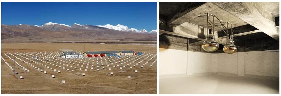 图4:我国西藏羊八井ASγ实验(左图:ASγ表面阵列;右图:地下水切伦科夫探测器)
