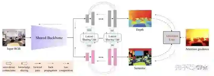 这个工作延续了以前利用分割提高深度估计的想法,只是假设上attention机制:
