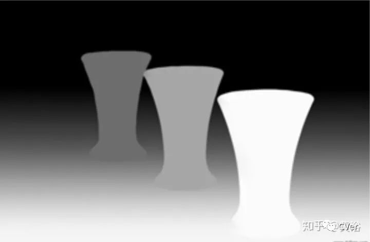 最后再说消失点,即某平面的一组平行线在透视投影下会聚的点。那么,它相应的平面就能得到深度图,如下图所示,在人工(特别室内)环境下可以推导深度图,沿着平行线的平面,靠近消失点的赋予大的深度值。该方法叫depth from geometrical perspective。