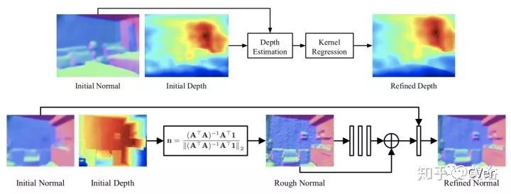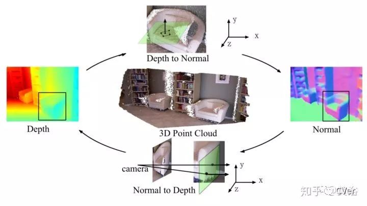 这是结合表面法向图的联合训练例子:GeoNet,Geometric Neural Network