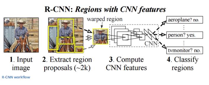 基于区域的 CNN 架构据说是所有深度学习架构中对目标检测问题最有影响力的架构。为了解决检测问题,RCNN 尝试在图像中所有物体上画出边界框,然后识别图像中的物体。工作原理如下: