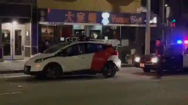 当旧金山警察-再次-追到无人出租车后面时,有旁观路人们在大笑大喊:「有没有搞错?怎么会有这种鸟事?」「搞什么鬼啊?」「我要把这场好戏看完」 。