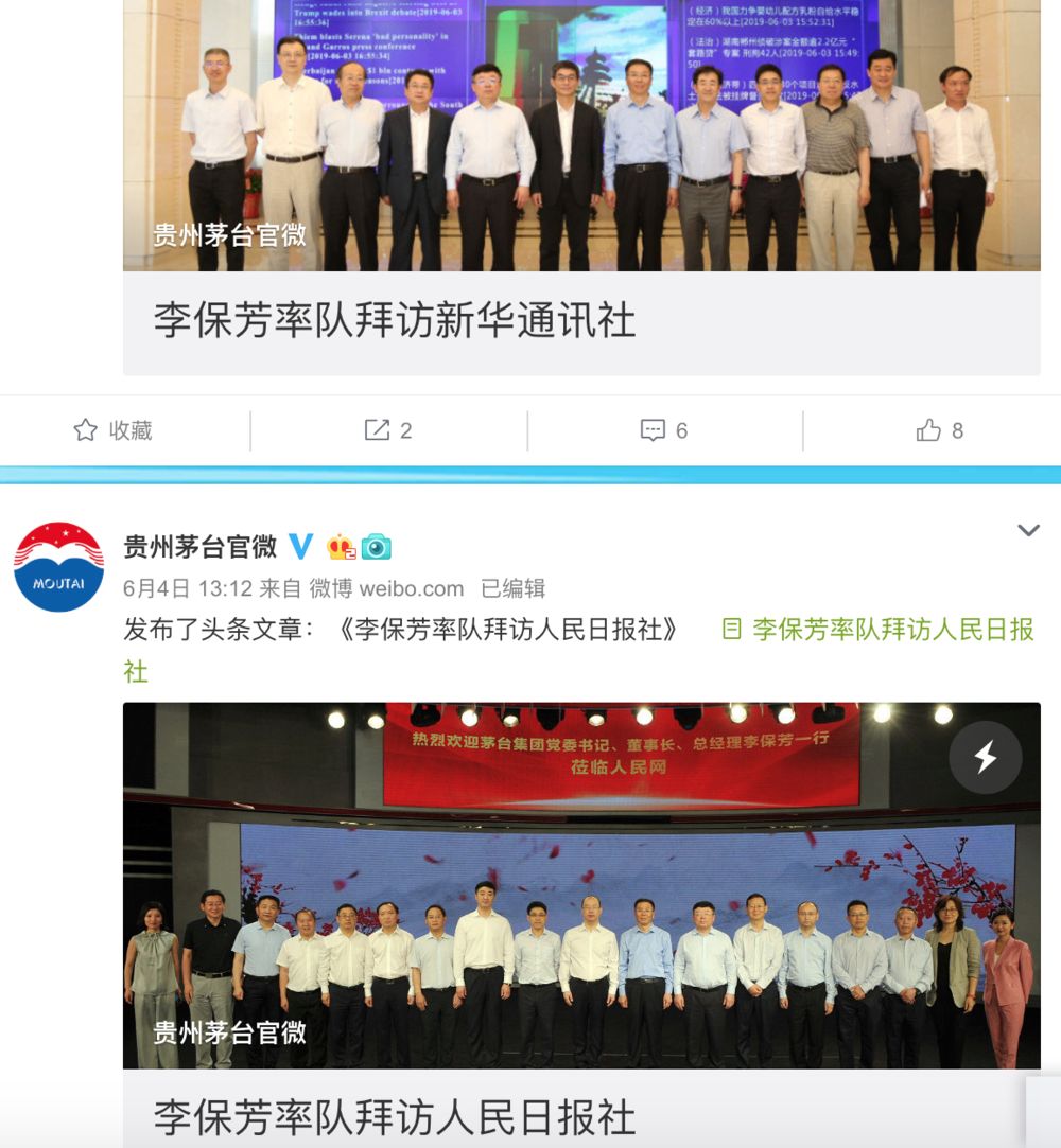 6月3日,李保芳率领高管拜访了位于北京东三四环之间的人民日报。他说:“此次茅台专程来京拜访主流媒体,人民日报社是第一站。”