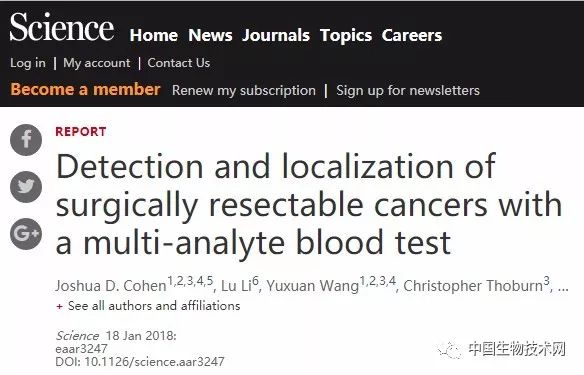 英国伦敦大学学院癌症研究所的Chris Abbosh认为该研究非常令人兴奋。他说:“这项研究首次将蛋白质生物标志物和血液中的肿瘤DNA结合起来作为癌症的筛查工具,并将该工具在大量不同癌症的患者中进行了应用。”