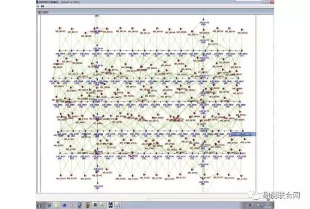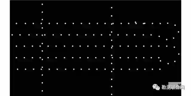影像匹配的实质是以一幅影像为参考影像,在另一幅或几幅影像上按照一定的匹配算法寻找同名点的过程,并完成同名特征点的提取,其中特征点主要指明显点,如角点、圆点等,它是影像的局部特性,影像特征点的均匀提取是影像匹配的关键,更是空三加密的前提基础。影像提取的均匀分布的特征点和测区航线间点的连接强度 (5°以上重叠) 如图 5、图 6所示。