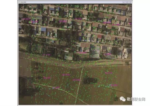 通过对DOM采集房角等特征点的坐标与DLG进行比较,经检查1:500 DLG和1:500 DOM套合精度较好,线划线与影像重合较为一致,DOM拼接没有出现色彩明显差异和拼接痕迹等问题。而且通过实践表明,航测影像采集成图的工作量,尤其是外业采集工作量要远远少于全野外数据采集,采用航测方法可以完成外业测量任务的80%左右[16], 这与采用传统全野外测图的作业模式相比较,大大地提高了工作的效率,缩短了任务周期,降低了野外人员的工作量和强度。