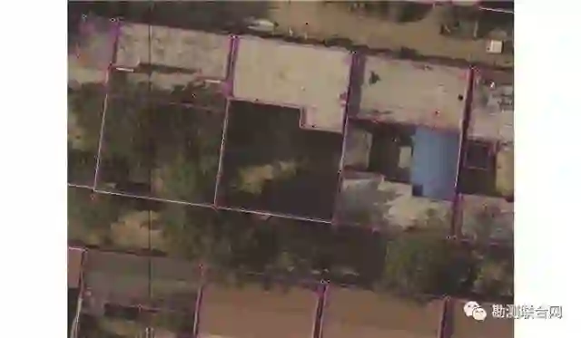 经过外业像片控制点测量、内业空三加密后,对无人机航摄的影像进行重采样,生成核线影像,系统自动匹配三维离散点,得到测区的DSM, 利用立体测图三维矢量数据构建TIN生成DEM,利用获得的DEM和空三加密成果进行单片影像的数字微分纠正得到正射影像。单片正射影像经过拼接、色彩处理、镶嵌、图幅整饰、图幅裁切后得到DOM成果。把DOM成果与全野外实测DLG数据进行套合,如图 7、图 8所示。