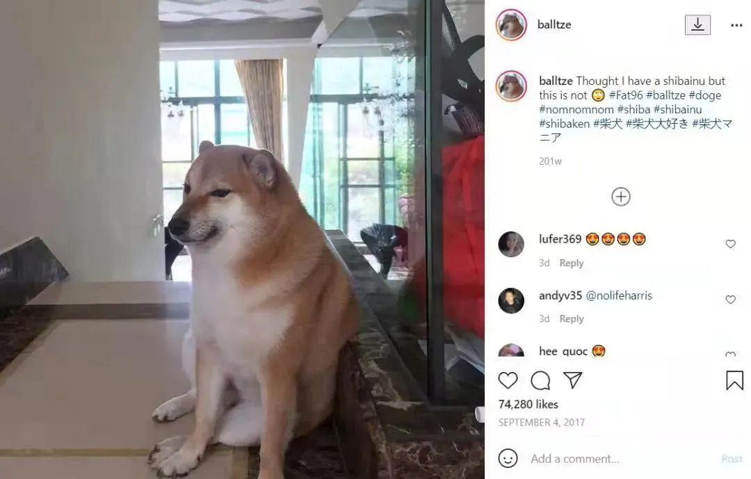 这只2017年开始在Instagram上走红的柴犬balitze,依靠其略带丧气、胆怯的可爱形象,于2020年左右开始席卷中文互联网。