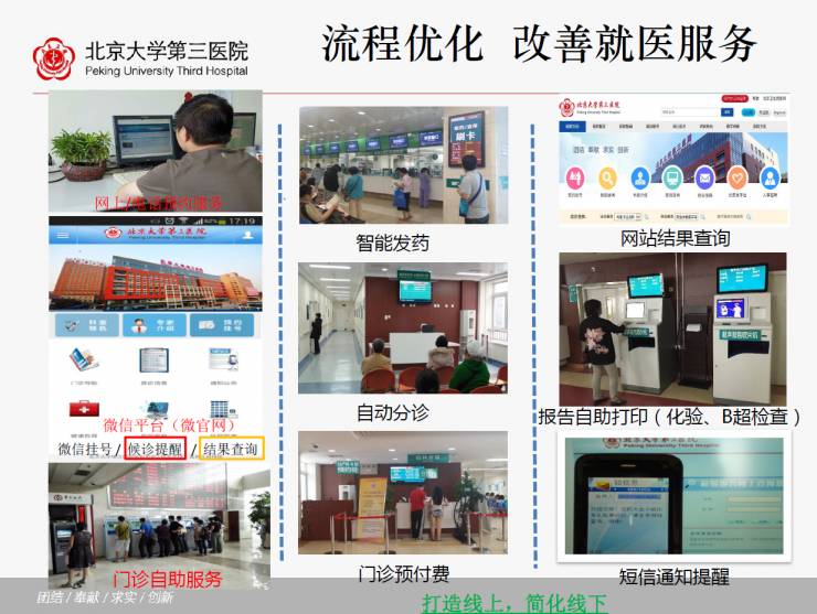 以前的操作方式是B超医生写报告,而现在医生不用写报告,直接出来以后患者在自助机上刷卡自动打印,由患者来完成,减少患者的等候时间。这就是一个流程的优化,以前都是医生来做。