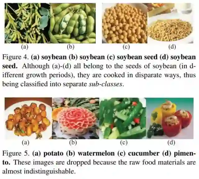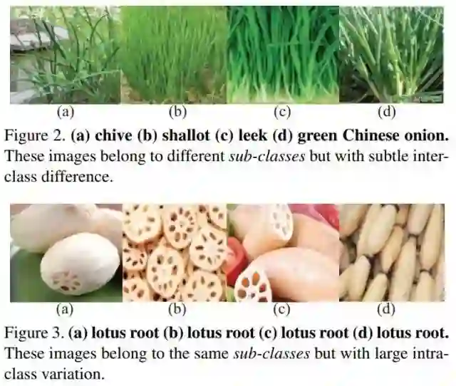 本文中,作者提出一种用于细粒度视觉分类(FGVC)的,针对特定领域的数据集-VegFru。现有的用于细粒度分类的数据集主要是关于动物品种或者具有有限标签标注的人造物体,而VegFru 是一个关于水果和蔬菜的大型数据集,其数据内容,即水果和蔬菜,与人们每天的生活密切相关。作者主要着眼于国内烹饪与食品管理领域,所以VegFru数据集根据饮食特性对蔬菜和水果进行了分类,并且每张图片至少包含蔬菜或水果中可食用的一部分。特别地,数据集中的所有图都具有多层级的标签。