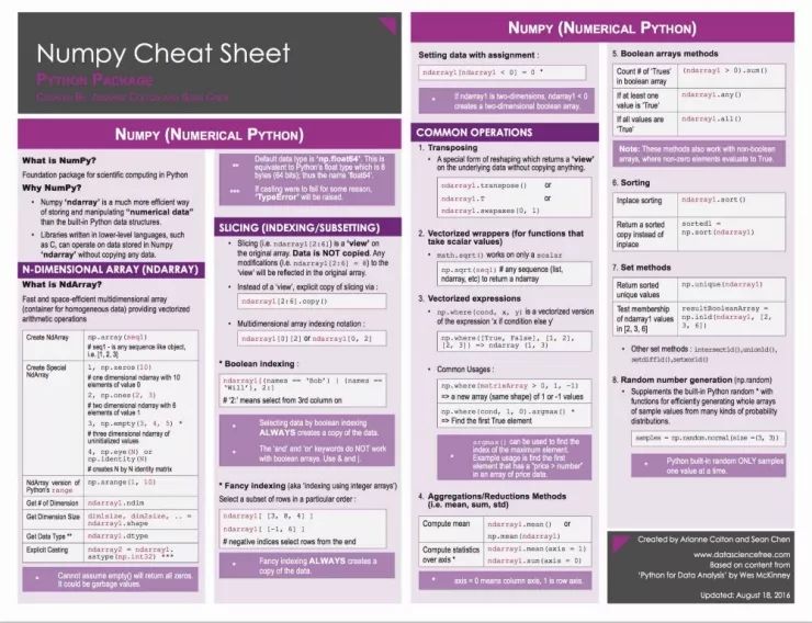 Numerical Python 的缩写,NumPy 是采用 Python 进行科学计算和数据分析所必须的基本程序库。几乎所有的高级工具都是基于 Numpy 构建的,例如 Pandas 和 scikit-learn。 TensorFlow 使用 Numpy 数组作为基础构件模块,基于此,为深度学习任务构建了 Tensor 对象和 graphflow 。很多 Numpy 操作都是用 C 实现的,这使它运行更快。对数据科学和现代机器学习任务来说,这是一个宝贵的优势。