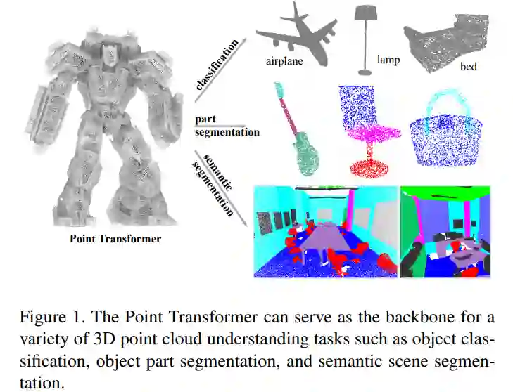。他们设计了点云的自注意力层,并使用这些层来构造诸如语义场景分割、对象组件分割和对象分类等任务的自注意力网络。本文提出的 Point Transformer 设计改进了以往跨领域和跨任务的研究工作。