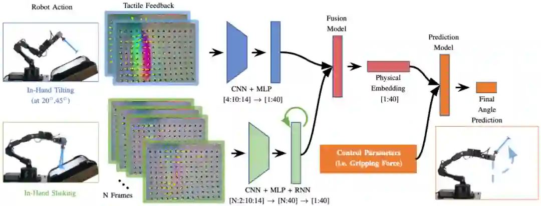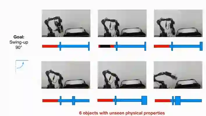 该项目通过对多种触觉探索动作的信息融合,让机器人端到端的去学习概括手中物体的物理特性,并依靠这个物理特征来实现高难度的手上控制任务(in-hand swing-up)。
