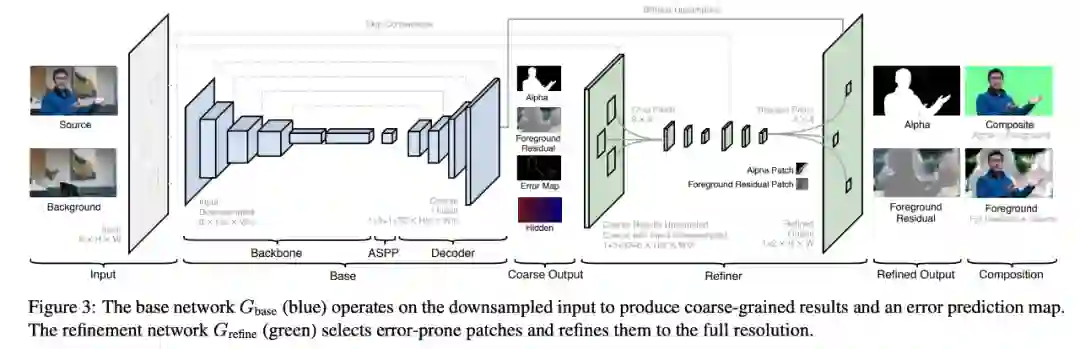 background matting 2.0 版本,并表示这是一种完全自动化、实时运行的高分辨率抠图方法,分别以 30fps 的帧率在 4k(3840×2160)和 60fps 的帧率在 HD(1920×1080)图像上实现 SOTA 结果