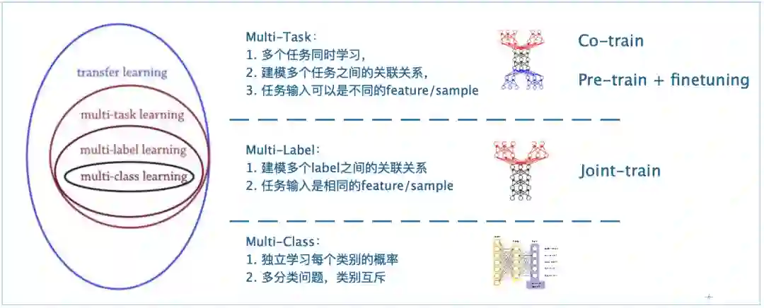 首先来厘清一些名词概念。如下图,解释了Multi-Task 与 Multi-Label等相关概念的关系。