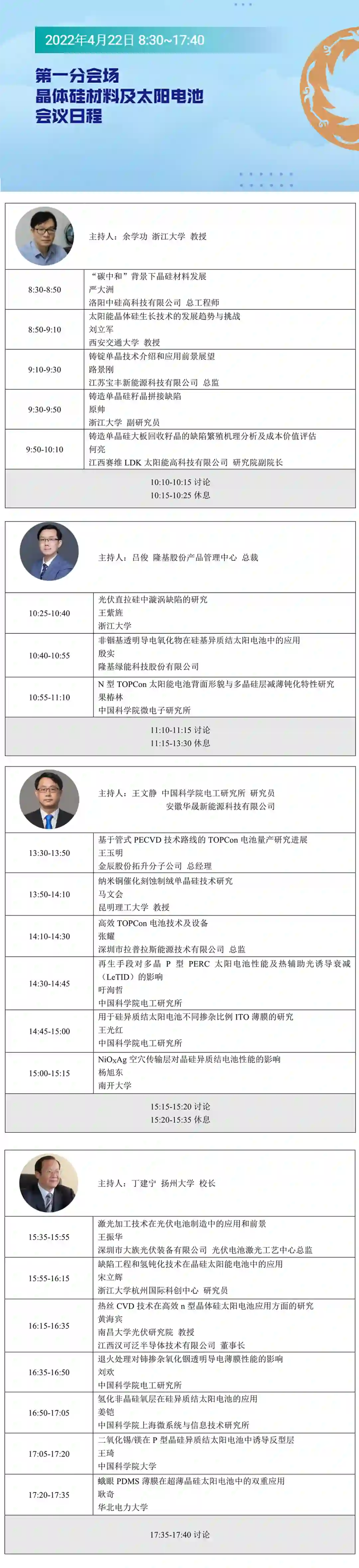 第十九届中国光伏学术大会(CPVC19)将于2022年4月20日-4月22日以全线上的形式召开。在此,我们诚挚地邀请太阳能光伏及相关领域内的专家、学者、教师、学生及工程技术人员踊跃参会。