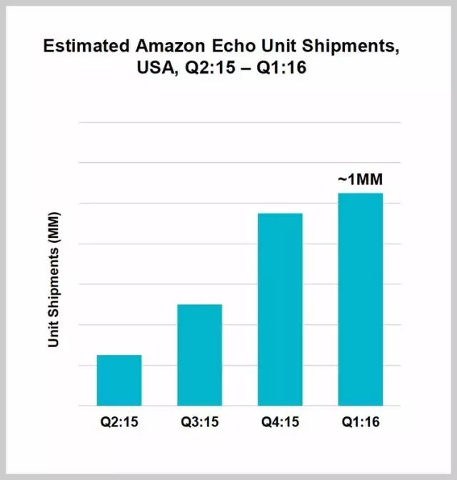 亚马逊Echo面世,带动了语音交互在家居领域应用的热潮。从2014年下半年至今,Alexa平台应用数从最初20多个增加到7000多个,并在过去半年内以每月1000个左右的速度增加。据CIRP报告估计,截止2016年11月,Echo累计销量超过510万台,2016年Q1-Q3共销售约200万台,较前三季度增长18%(2015Q2-Q4数据来源于Mary Meeker《2016互联网趋势报告》)。