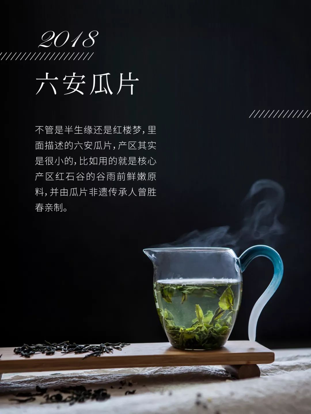 2018年的六安瓜片是去年同款,也是广受好评的产品,它刷新了很多人对绿茶的印象,拉高了人们对绿茶的期待。六安瓜片以谷雨前后采制的滋味佳,4月21日之前的订单将于4月25日产地发货,之后的订单在5月4日发货。
