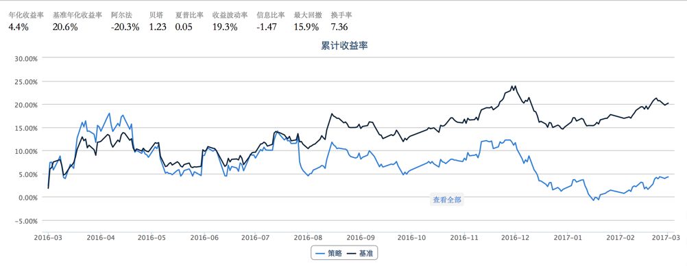 在使用TensorFlow基础函数搭建神经网络模型中,他分享了构建量化策略的各个步骤的源码,分为:数据准备、构建单层神经网络模型、模型可视化、构建多层神经网络模型和回测,下图为策略的表现: