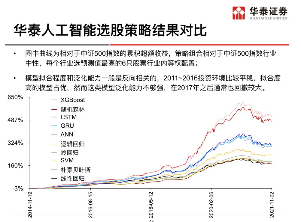 最后,她分享了华泰人工智能选股策略的构建方式、结果对比和难点思考。上个结果对比图感受一下: