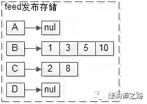 每一个用户,都有一个feed队列,记录自己曾经发布的所有feed数据。
