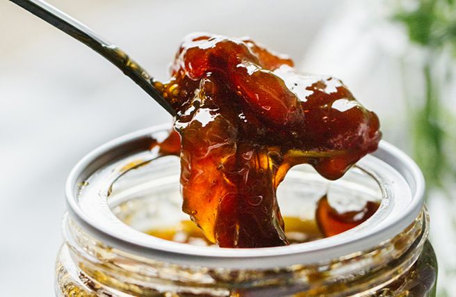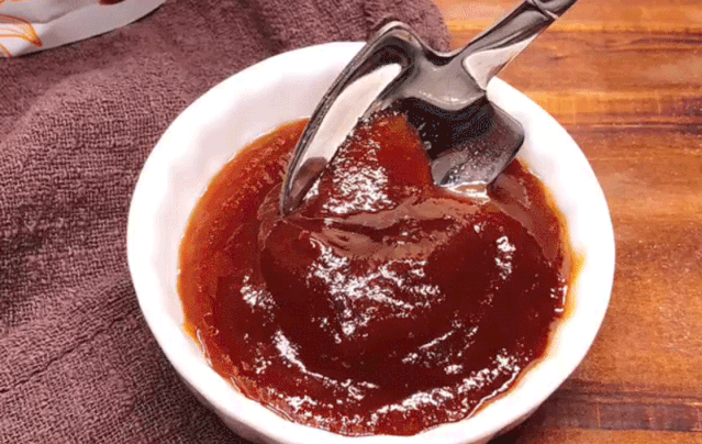 粘稠的膏体,大块的果肉,深谙红的诱人色泽,果味香扑鼻而来,张口即食,味蕾就这样轻易被征服!
