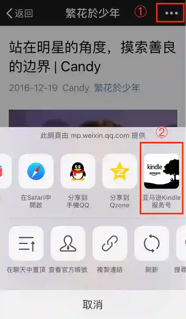 3. 然后在微信内推送文章或者直接粘贴 URL 发送,推送内容到你的 Kindle 设备。