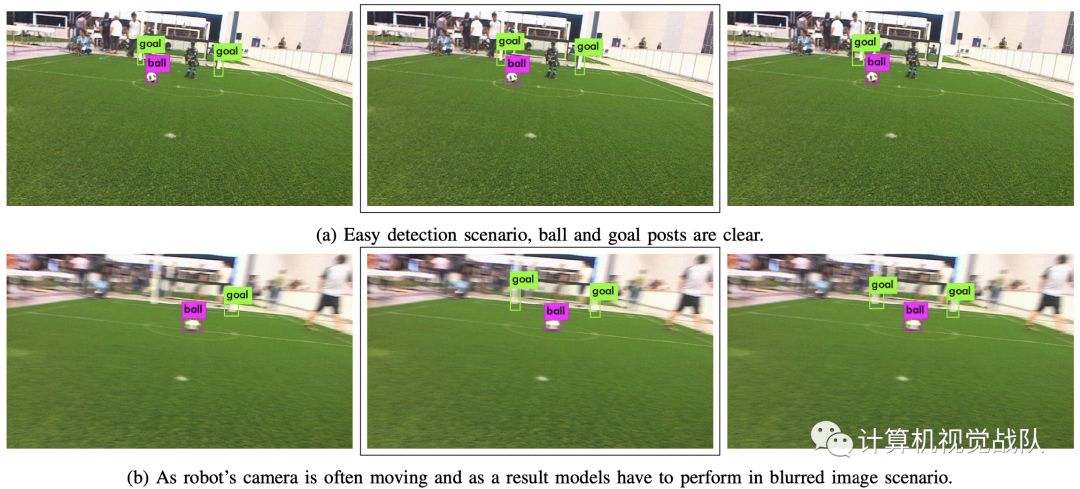 传统上,在机器人杯类人机器人比赛中,基于颜色分割的技术被用来检测足球场的特征,如球门和球。这些技术是快速和可以实现良好的精度在简单的环境,例如使用橙色的球,控制室内照明和黄色的目标。然而,根据RoboCup 2050年的球门,球队已经看到了自然光照条件(暴露在阳光下)、白色背景的球门和各种颜色的国际足联球。基于颜色分割的技术在这些具有挑战性的场景中无法发挥作用,主要推动了实现多种神经网络方法的竞争。