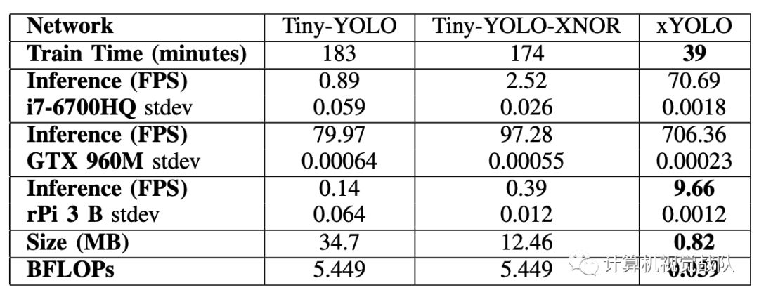 作者提出的网络xYOLO是从YOLO v3 tiny派生而来的,具体而言,使用AlexeyAB的DarkNet,它允许XNOR层,并建立在下图所示的Raspberry PI的基础上,xYOLO在训练和recall中都使用了正常的卷积层和XNOR层。