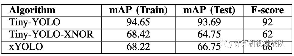观察到上图,模型在训练和未见测试集上都取得了相似的精度。与其他模型相比,Tiny-YOLO实现了更好的目标检测精度。在验证数据集上,xYOLO能够达到约68%的准确率,在测试集上达到约67%,这在考虑到xYOLO的速度和大小时是很好的。
