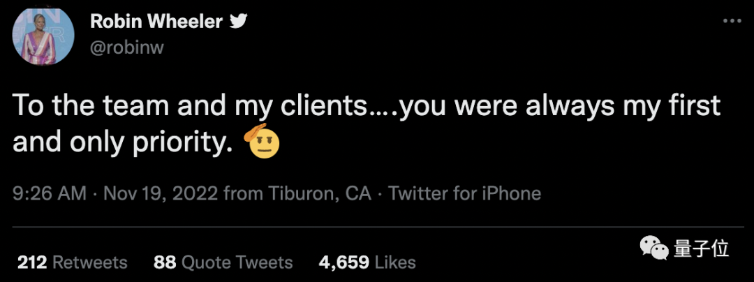 转头第二天,广告销售主管Robin Wheeler发出了“敬礼”表情,被认为是她离开的信号。