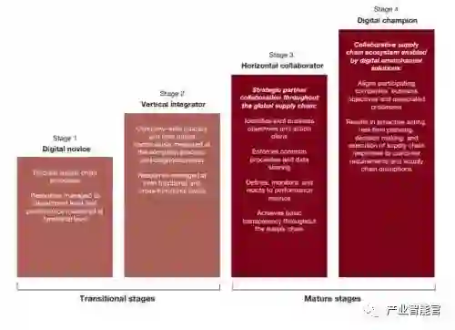 4.数字化冠军。 这些公司实现了与合作伙伴的最高水平协作和运营透明度,同时开发优化整个供应链的互惠流程和分析技术。