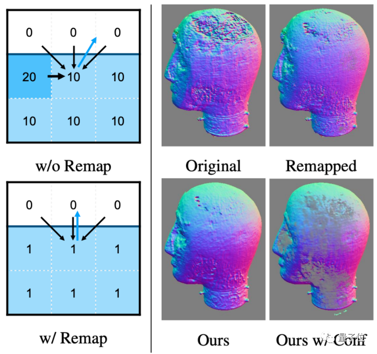 同时,设计了一种估计物体表面法线的新算法,在保留关键细节的同时,也消除了几何噪声的影响(法线即模型表面的纹路,随光线条件变化发生变化,从而影响光照渲染效果):