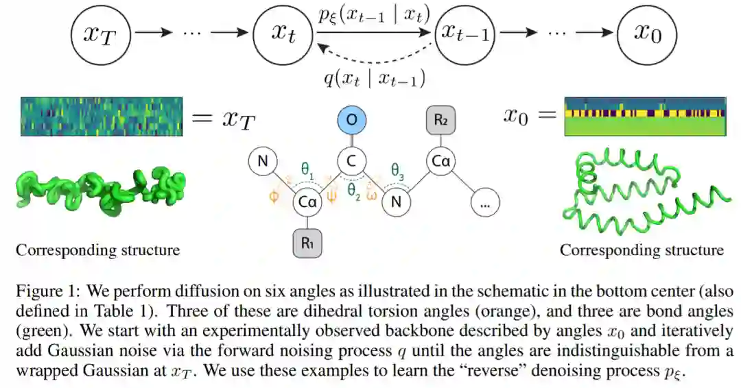 本文中,来自斯坦福大学、微软研究院等机构的研究者,他们受体内蛋白质折叠过程的启发,从而引入了一个折叠扩散( folding diffusion,FoldingDiff )模型,该模型通过镜像蛋白质天然折叠过程来设计蛋白质主链结构。