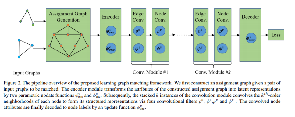 基于学习的图匹配方法已经发展和探索了十多年,最近在范围和受欢迎程度方面迅速增长。然而,以往的基于学习的算法,无论有没有深度学习策略,都主要关注节点和/或边缘亲和力生成的学习,而对组合求解器的学习关注较少。在这篇论文中,我们提出了一个完全可训练的图匹配框架,在这个框架中,亲和的学习和组合优化的求解不像以前的许多技术那样被明确地分开。首先将两个输入图之间的节点对应问题转化为从一个构造的赋值图中选择可靠节点的问题。然后,利用图网络块模块对图进行计算,形成每个节点的结构化表示。最后对每个节点预测一个用于节点分类的标签,并在正则化的排列差异和一对一匹配约束下进行训练。该方法在四个公共基准上进行了评估,并与最先进的算法进行了比较,实验结果表明了该方法的良好性能。
