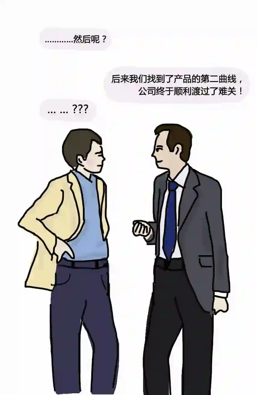 通常,那些卓越绩效企业之路分为三段:第一个行业领先业务、新的业务增长点、下一个新的业务增长点。从外面来看,它是一条上升的曲线,但从内部看,它可以分解为无数条第二曲线。