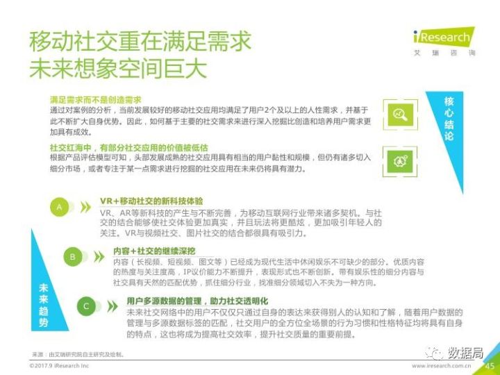 《2017年中国社交应用需求价值白皮书》运用定性与定量结合的研究方法,对当前移动社交用户的需求进行研究,并重点分析了社交应用的需求价值差异性,旨在通过用户的视角为移动社交产品的发展提供参考。