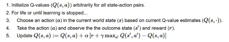 lr * [Reward + discount_rate * (highest Q value between possible actions from the new state s’ ) — Current Q value ]