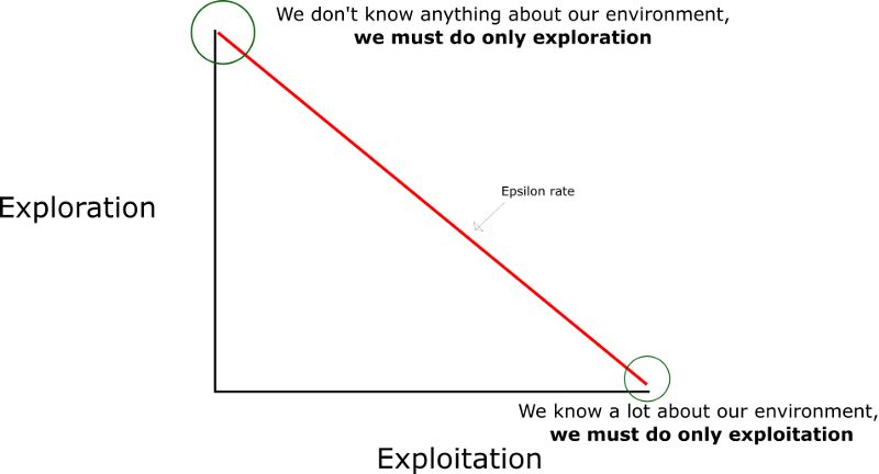 我们的想法是,在开始时,我们将使用epsilon贪心策略: