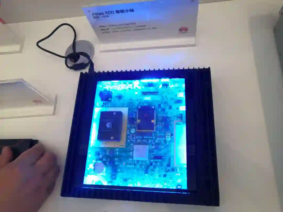 大会上华为没有新的 AI 硬件产品发布,但现场也展示了不少以往发布的硬件,包括 AI 加速模块 Atlas 200、Atlas 300I 推理卡、Atlas 800 推理服务器、Atlas 900 AI 集群等,看两张现场实拍图吧!