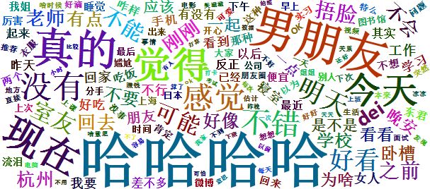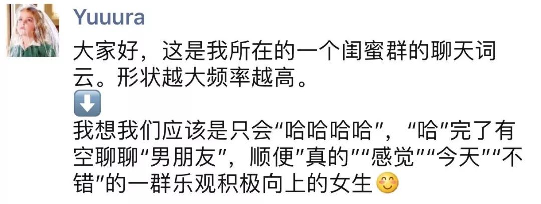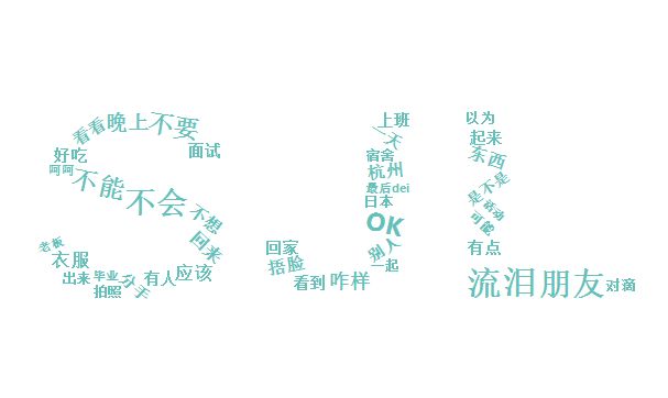 最后,欣赏一下我们的个人词云(为了美观,删去了特别高频的“哈哈哈”“哈哈哈哈”“男朋友”等关键字啦)。