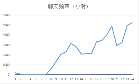 不知道大家有没有发现,我们在聊天的时候,经常是这一秒忘了上一分钟说了什么话题。翻翻聊天记录,我经常的内心os是:“嗯?为什么突然说到这?卧槽,这也能扯到?!”当时的心路历程恐怕不是几段跳跃的聊天记录文字能够回忆起来的。所以说:女生之间的聊天话题总是飞崖式跳跃的。(第二条规律了!)那么我们在一天中的哪个时间段聊天频率最高呢?