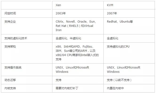 KVM其实比XEN出现的晚,但是当KVM出现时,已经全盘使用XEN虚拟技术的Redhat直接抛弃了已经使用多年的XEN,究其原因,KVM是Linux的一部分, 可使用通常的Linux调度器和内存管理. 这意味着KVM更小更易使用。