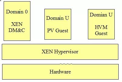 XEN包含三个基本组件:Hypervisor、Domain 0、Domain U。